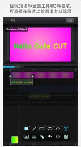 4 支持制作画中画影片,直接在影片上绘画,提供30多种绘画工具,提供3种高级画笔,能帮助你画出专业效果. (纹理, 线性渐变, 发散性渐变)。