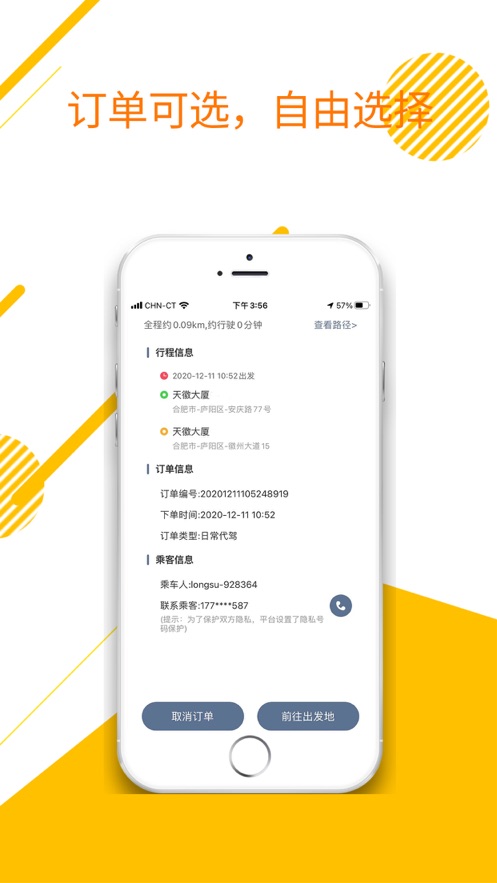 体贴透明:起点终点可见,全程语音导航;等太久被放鸽子,还有补偿订单推送,体贴关怀,我们懂你。