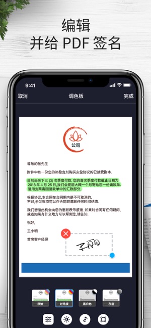 2.直接在您的设备屏幕上签署文件,创建并保存一个或者多个签名,并根据您的需要添加至扫描件上。