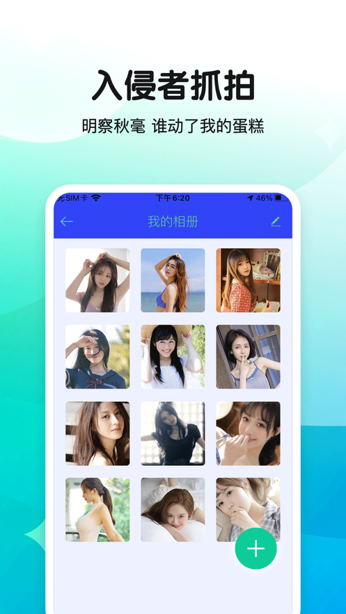 输错三次密码以后,自动抓拍入侵者,帮您快速掌握陌生人启动您的应用。
