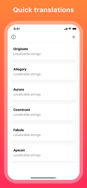 Locale App Translations免广告版是一款非常有用的掌上输入开发工具。它可以让你快速方便地为Xcode生成翻译。基于iOS设计指南构建,它看起来像是你设备上的部件。没有复杂的设置需要配置,您可以拿起它并立即开始。