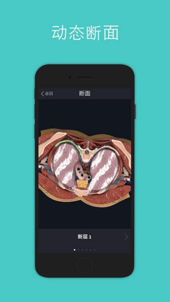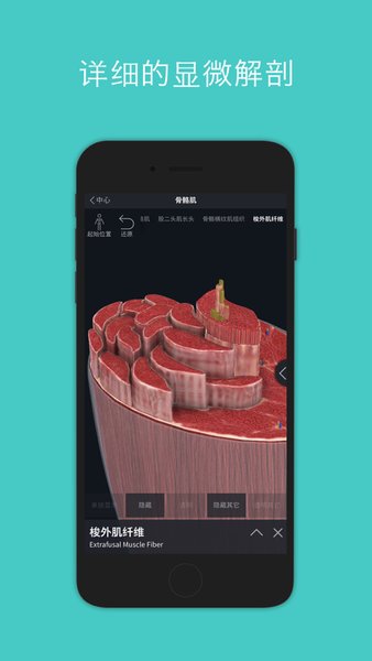 2 动态断面解剖、实时肌肉运动、肌肉起止点、骨表面和骨性标志、12个分层人体系统、神经示踪、血供示踪。