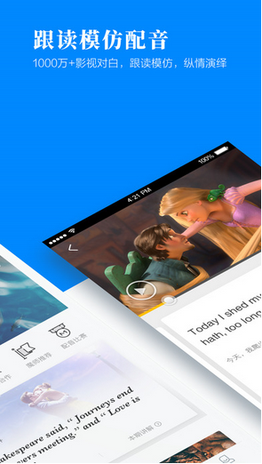 7 离线缓存喜欢的片段和单词,没网时也能练习配音;地铁、公交上也能体验玩英语的乐趣咯!