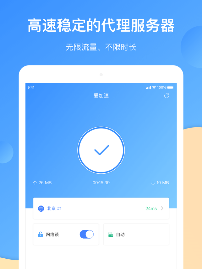 1.爱加速苹果版界面简洁,清晰明了。一键防御,做到贴心保护。兼容Windows、MacOS、Android、iOS主流热门平台,在公共WiFi下看直播,上头条,搜新闻,租房,招聘,吃鸡荣耀,抖音快手,移动支付皆可放心使用,不怕上网隐私被泄露、个人账户被盗取。