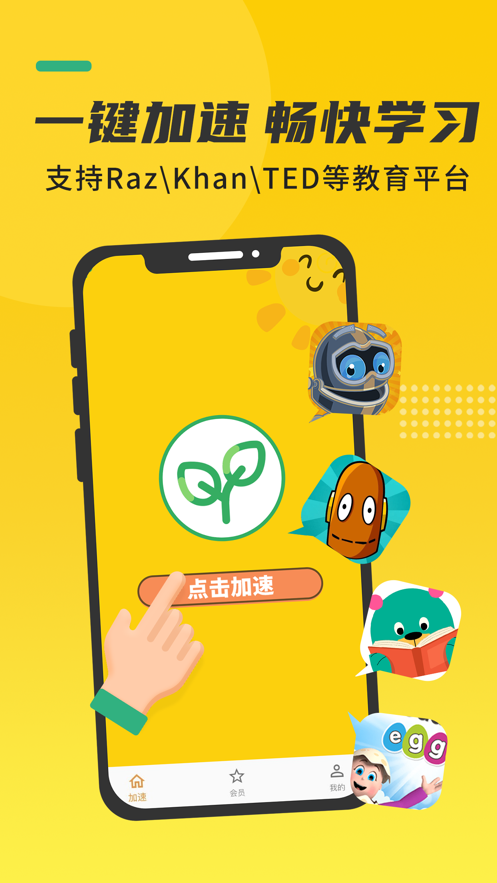 青苗加速器app全面加速海外Kids A-Z、RAZ、可汗学院、TED等网站及应用,针对中国境内渴望海外优质教育学习资源的学生/家长等用户,青苗加速器下载之后帮助解决海外网络学习时音视频卡顿缓冲问题,提升网页应用加载速度,需要的用户欢迎来yn下载站下载使用。