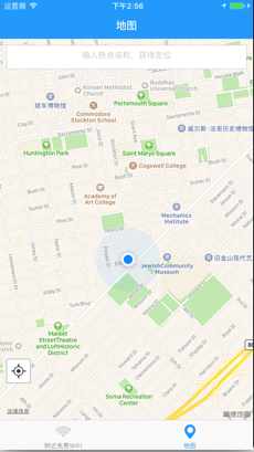 根据用户的定位的位置信息,以地图的方式显示周围的免费wifi分布情况。