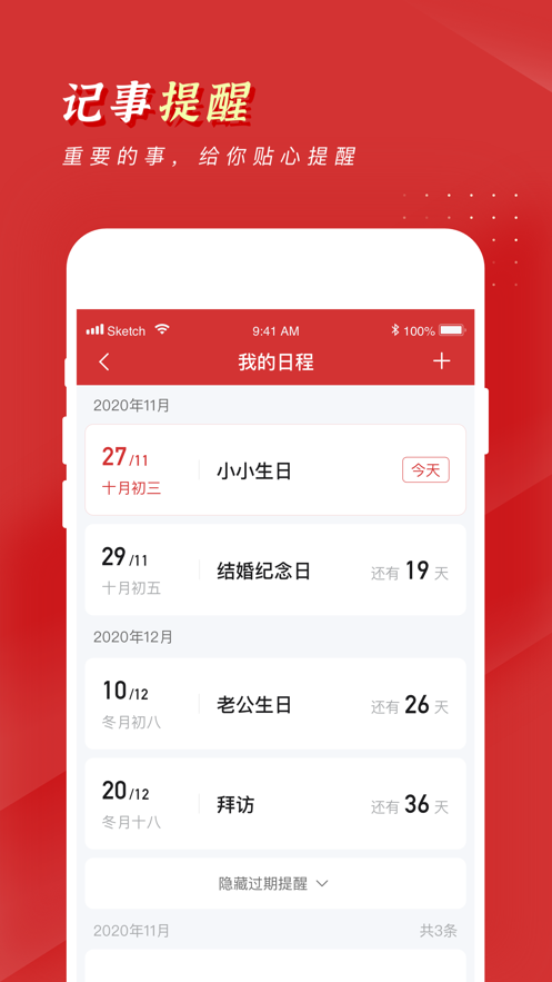 便捷高效的工作安排、时间管理、重要日程提醒,是你不可或缺的专属私人日程管家。