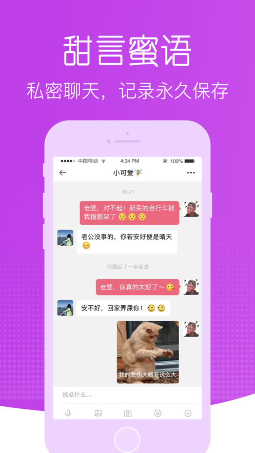 2、专属聊天:恋爱时光app下载后拥有私密聊天,聊天记录永久保存,收藏更方便。