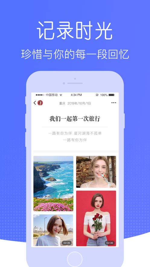 1、时光记录:共同记录与Ta的所有回忆,或甜蜜或苦涩都是你们爱的点滴 。