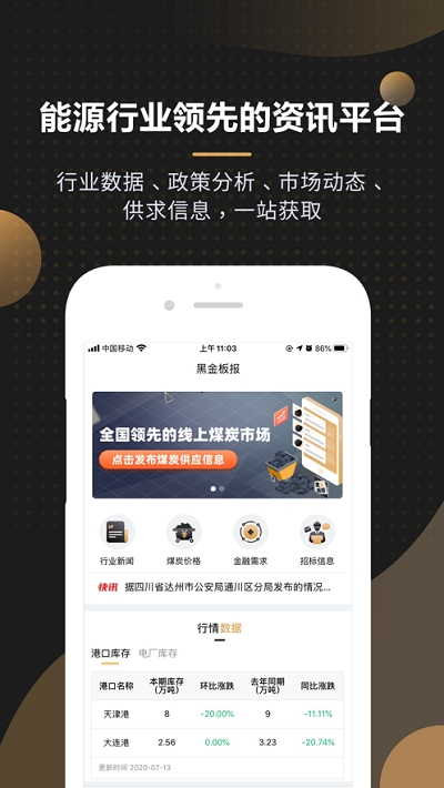 黑金板报APP是一款针对大宗有色金属行业开发的移动资讯服务软件,帮助用户接收最新煤炭资讯,了解煤炭市场价格和供需情况,使用简单,功能强大,感兴趣的朋友可以通过本页面链接进行黑金板报APP下载使用。