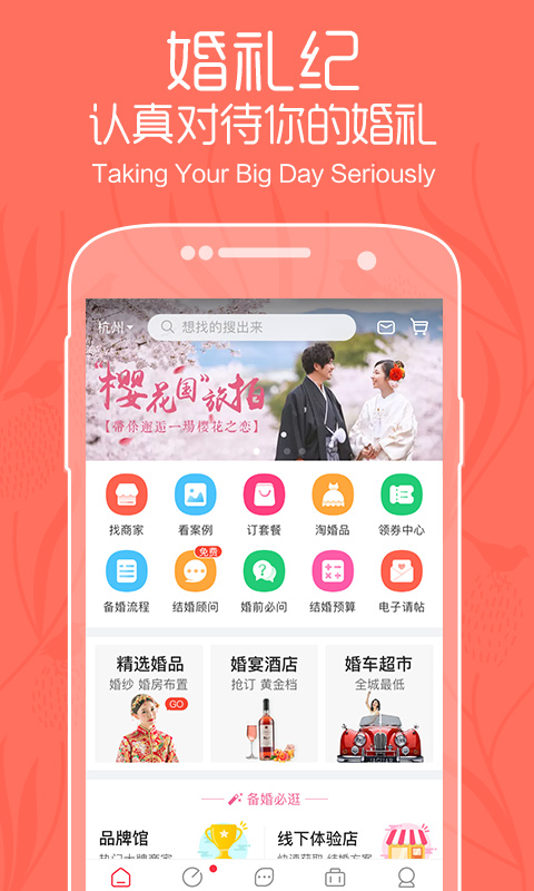 1 选择婚庆产品:选择用户喜欢的婚庆产品,并为成千上万的人提供个性化的推荐。 您可以轻松选择“思考与意外”,而无需盲目购物。 “的婚礼商品。