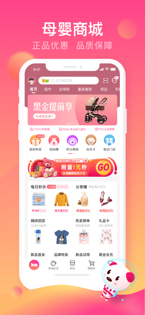 1.孩子王app下载后拥有品牌自营,海外优选,孕婴、童装、玩具、食品、美妆大牌云集,全球直邮,各种拼团秒杀让你优惠选不停。