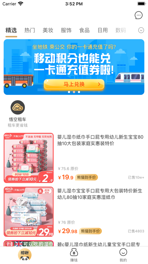 招财熊猫app是一款非常实惠的网上购物软件,软件内所涵盖的商品种类风场丰富全面,交通卡和影视会员也都可以在这里进行充值,包含了用户生活中方方面面所需要的产品,还有很多特权折扣福利等你来领取,招财熊猫苹果版下载后不仅可以用比其他人更加优惠的价钱买到同样优质的商品,还可以在这里领取红包!