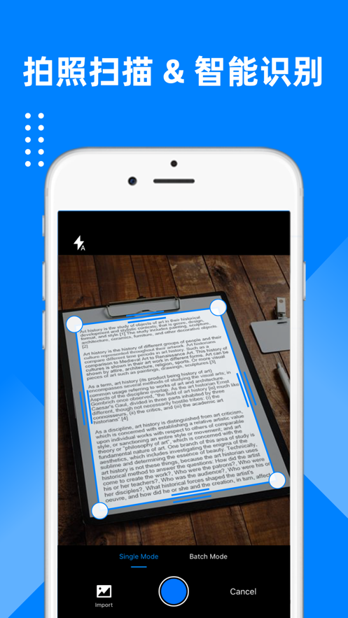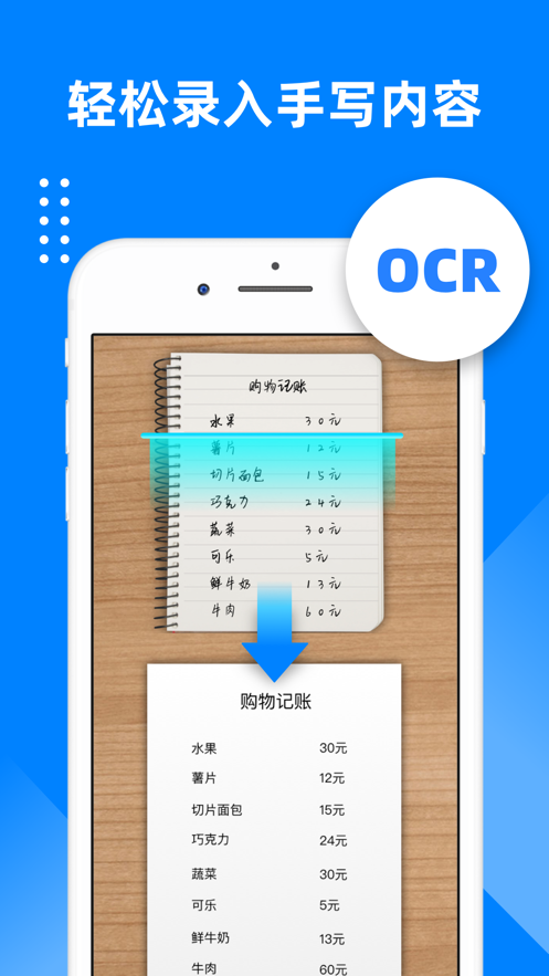 1 简单易用的扫描工具,能够将你的手机变为扫描仪,轻松扫描各种文档、笔记、证件。
