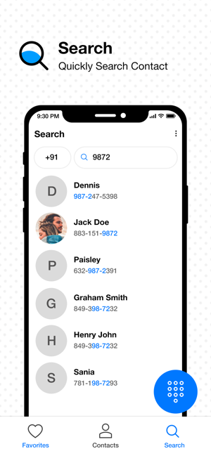 4、在T9拨号器上搜索人和电话号码。