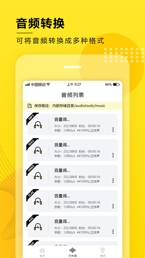 格式转换:MP3/AAC/M4A/FLAC/WAV等各种各样音频格式转换,一键制作音乐格式,效率极高;