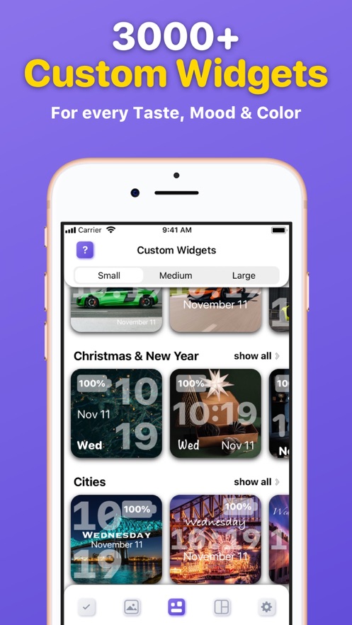 选择,编辑和激活您喜欢的自定义小部件从最大的,彩色的集合,以添加到您的主屏幕。