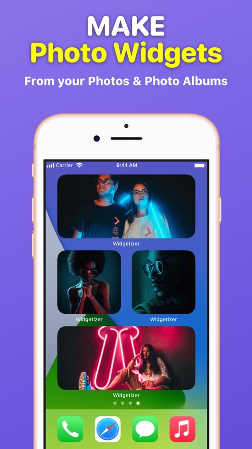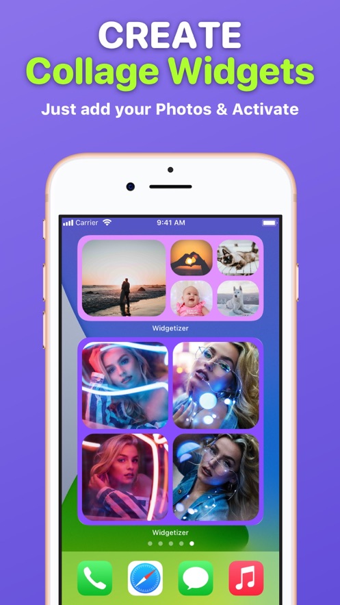 创建美丽的拼贴小部件从您的照片,选择适合你的拼贴和小部件大小的颜色和布局,激活以添加到您的主屏幕。