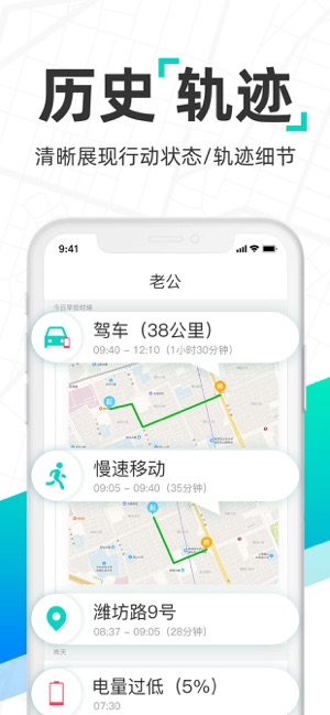 3. 历时轨迹记录功能:软件提供历时轨迹记录功能,该功能可以清晰展现定位人的行动轨迹,是老婆查岗的好帮手;