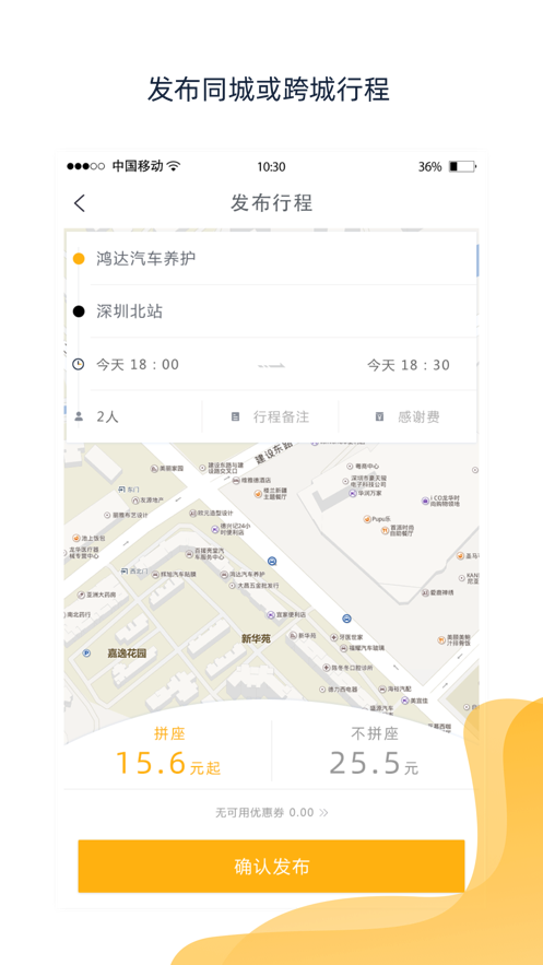 4.实名认证,行车安全,在这里可以轻松发布拼车信息。