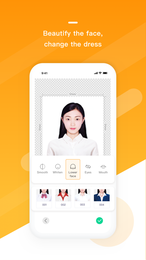 3、拍摄的照片可以直接进行底色、美颜、换装处理。用软件处理的照片看不到修理图的痕迹。