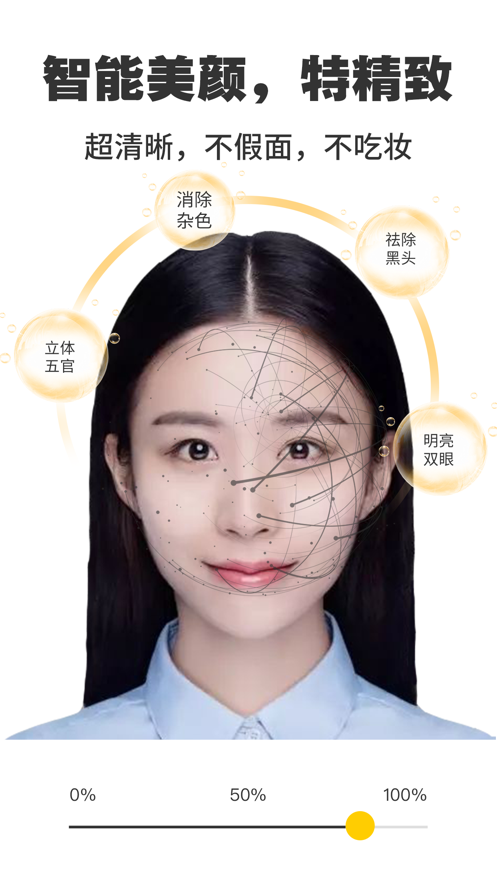 2、轻微的美颜美白功能使证件照美丽自然,再也不用为不会ps而烦恼。