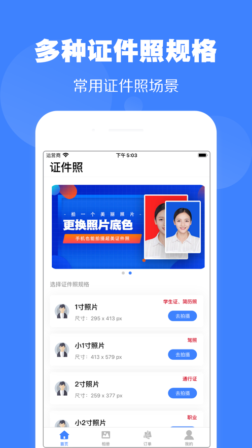3.支持多种标准寸照,足不出户就能搞定不同类型证件照。
