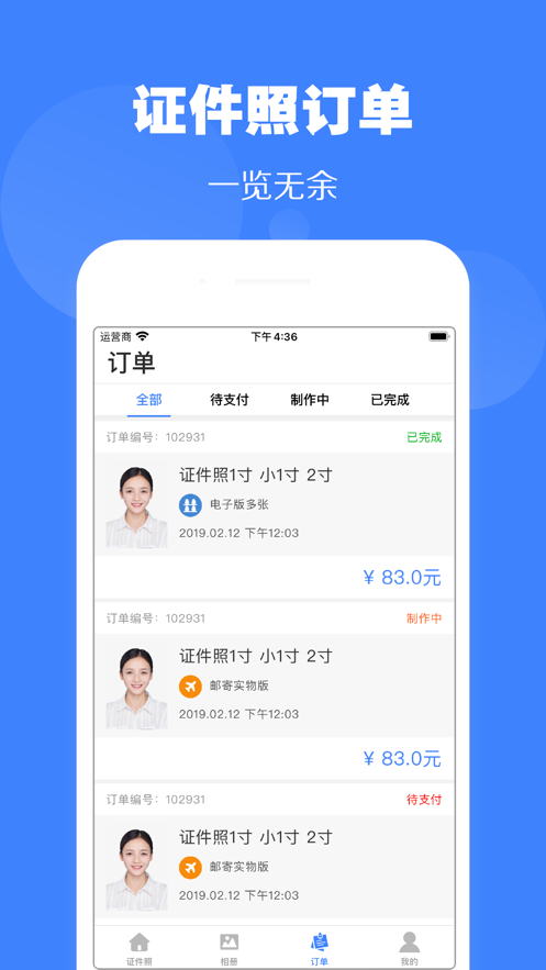 4.支持电子证件照保存和全国邮寄纸张证件照。