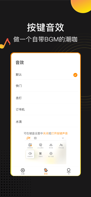 3. 按键音效功能:趣键盘极速版APP是一个自带背景音乐的潮咖,用户可以通过设置按键音效,让输入不再单调;