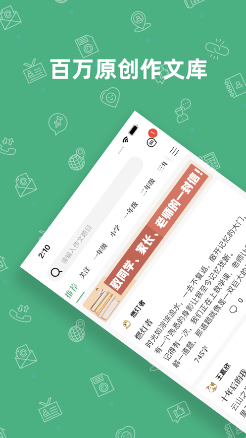 1、历经10年积累,通过近百万小作者们的努力,发表收录了海量写人、写事、写景、状物、议论文、诗歌、散文、日记等各色话题作文,还有众多小升初、中考、高考优秀满分作文供我们学习分析。