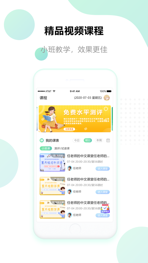 学生可免费试听,选择自己满意的教师和喜欢的时间上课。