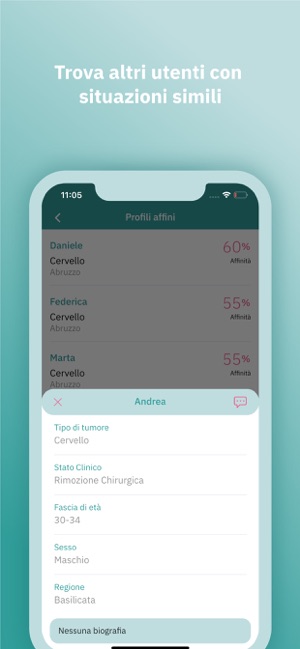 2、搜索功能使您可以找到其他要联系的用户。从此窗口中可以选择感兴趣的诊断配置文件。包含不同选项的下拉菜单可简化所需功能的插入。搜索之后,将显示一个配置文件与正在搜索的配置文件相似的用户列表。通过选择单个用户,可以查看他们的诊断配置文件并决定是否与他们联系。