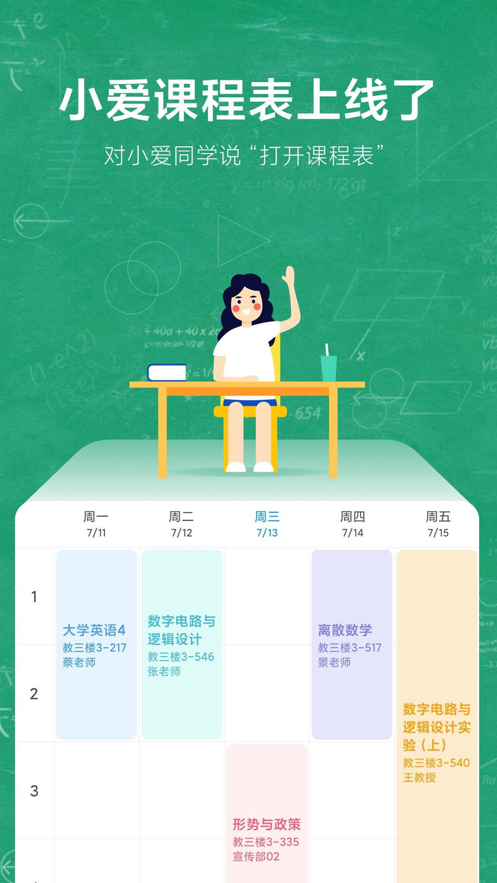 小爱课程表手机版是一款在手机上提供校园用户课程表的服务软件。这个软件非常智能,里面有AI路线表。免费利用这个课程管理平台,学生们管理自己的课程,帮助用户学习。拍手机照片的话会导入上课时间。请快点使用平台管理课程。