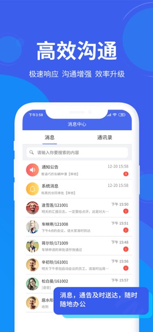 1、提供高效、安全、实时的IM及时通讯任务,使沟通更明确更方便更简洁。