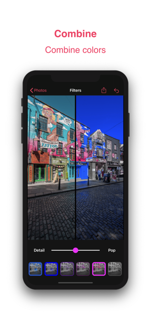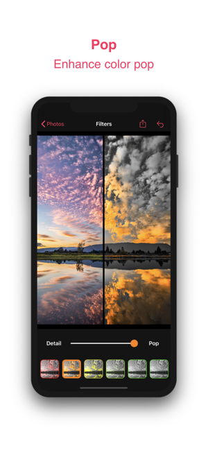 2、编辑:使用我们令人难以置信的“ Pop / Detail”滑块工具调整每种颜色,以产生令人惊叹的感知效果。