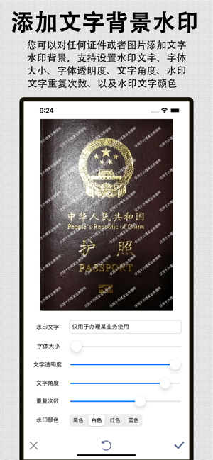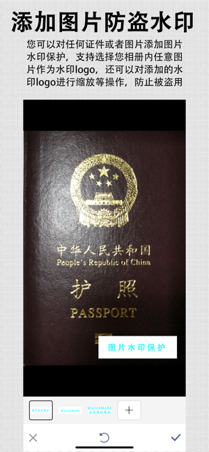 “安全水印相机”是一款专门为证件或者各类照片加上水印的相机,专门保护您的证件安全,防止您的证件被他人盗用产生不必要的麻烦和损失。您的重要证件比如:身份证、房产证、毕业证、营业执照、合同文本、复印件等其它重要照片,有时需要在网上发给他人办理业务。而如果没有加上水印背景的保护,很有可能被他人盗用而产生重大损失。
