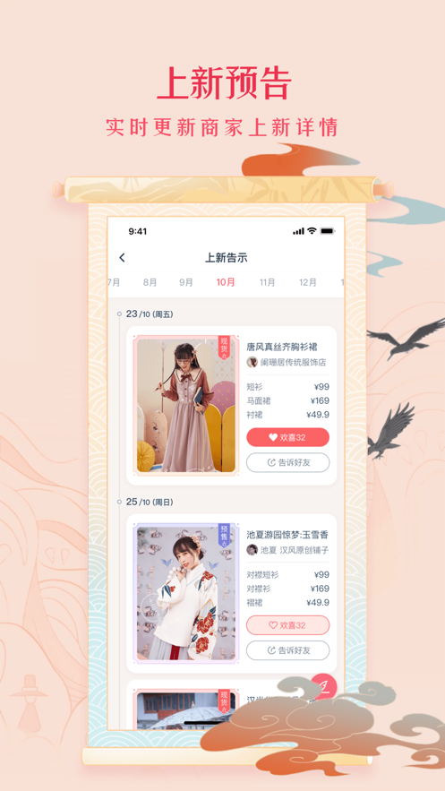 2、汉服上新:从众多汉服商家那里获得第一手汉服的全新新闻,并跟随最前沿的汉服趋势