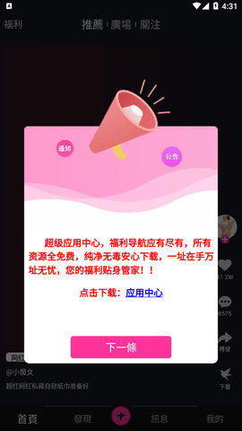 夜里必用短视频app大全合集有海量真实主播在线互动,在这里你们可以自由的做自己。所有想要释放自己压力、烦恼、不开心等负面情绪的朋友,都也可以来解压。它可以成为你很好的朋友,没有人认识你,没有人了解你,你是什么样的只有你自己决定。你们还能在这里看免费的直播内容,全部都不要钱,你们想看多久都可以,千万别错过这个好地方。