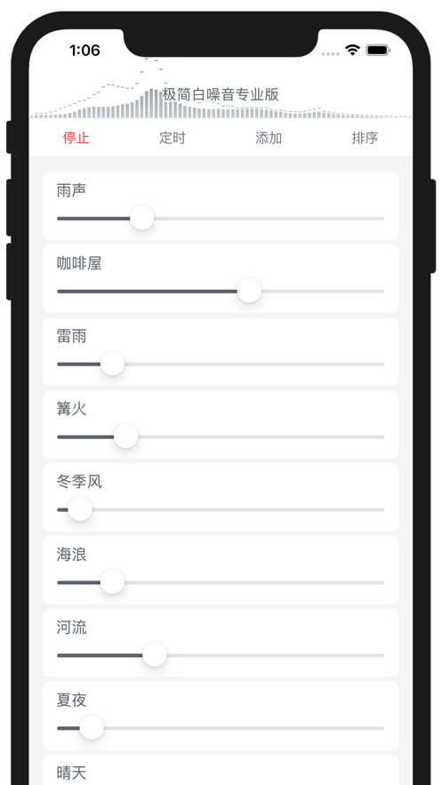 极简白噪音专业版app是一款将白噪音做到极简的健康应用,更简单更纯粹令人陶醉,极简白噪音专业版软件应用中提供了自然声音、冥想曲等海量音频内容,并支持混合音效,你可自定义调节各音频音量调节出新的音效组合,帮助你从音效节奏中抽离,进入另一个舒心宁静时空,有需要的用户欢迎来yn下载站下载使用。