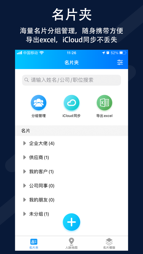 【名片夹】海量名片分组管理,随身携带方便环保。