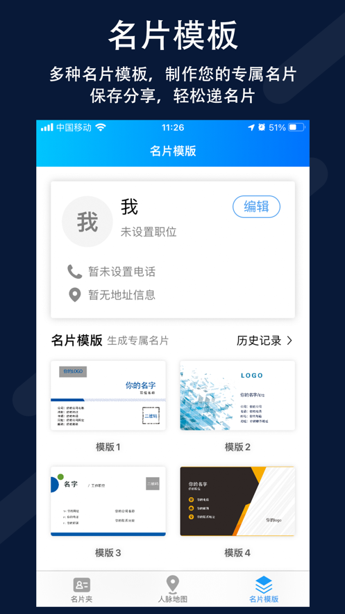 【名片制作】多种名片模板任你选,制作您的专属名片,保存分享,轻松递名片。