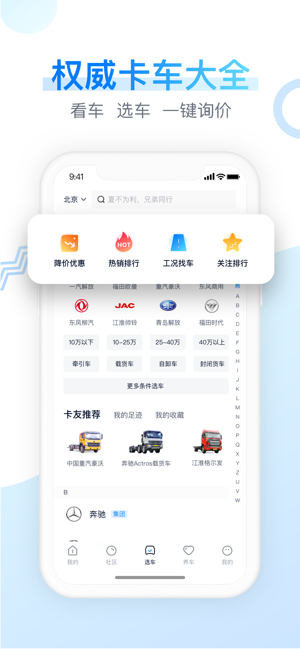 3、车型大全,便捷找车:覆盖上万车型信息,迅速、便捷找车,经销商提供有效卡车报价,方便寻找全网超低价。