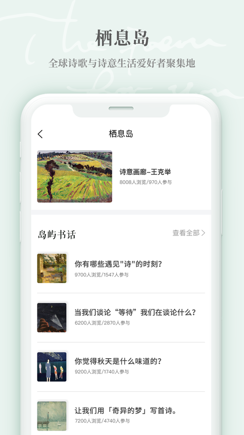 3、共享掌中动态,与其他爱好的用户共享原创诗词,交流学习,提高写作能力。