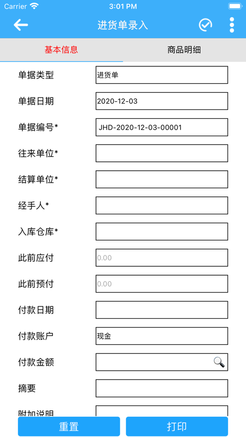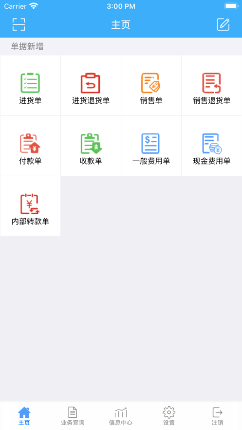 支持收款单、付款单、现金费用单、一般费用单、转款单的 新建、查询、蓝牙打印