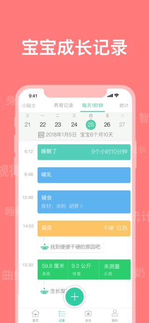 育学园为您提供便捷的记录+清晰的统计工具,让你随时了解宝宝的成长发育情况。