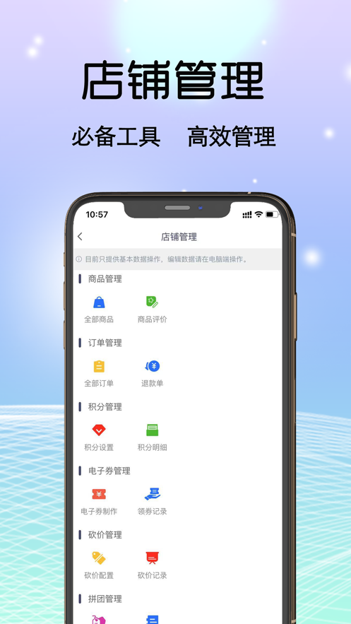 这款软件推荐给大家,欢迎下载使用,致力为商家提供更高效的工作方式,是商家的便捷管理后台,适用于已入驻智慧商城的商家使用。