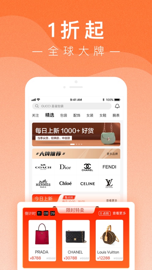 爱马仕、LV、CHANEL、GUCCI、CELINE、DIOR、宝格丽、FENDI、BURBERRY、PRADA、MiuMiu、 Salvatore Ferragamo、Tod’s、Versace、Emporio Armani、Roger Vivier、Hogan、VALENTINO等应有尽有,经典款和最新款好货不断上新,让你足不出户享受最低折扣!