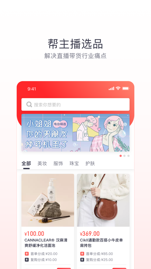 1、通过强大的供应链能力,迅速解决MCN机构或个人主播的选品问题,发现容易卖的,保证绝对质量。