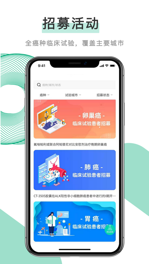 2.汇集国内新药临床试验,提供免费用药、前沿新药的治疗机会,更有专业人员为您在线匹配试验方案。
