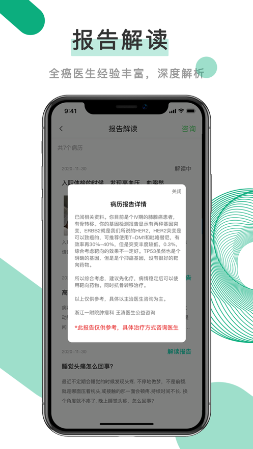 3.不管是复查化验报告、影像数据,亦或是基因检测报告,都有专业医生为您解读。